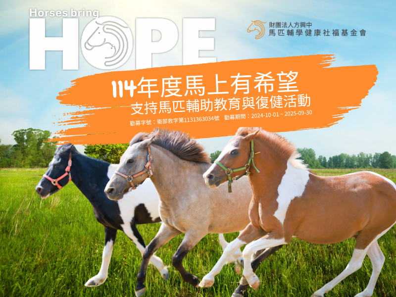 為發展遲緩兒童和身心障礙者籌募114-115年度馬匹輔助教育與治療活動所需經費,以幫助身障學員透過騎馬、照顧馬、與馬互動的過程中,發揮個人優勢、促進身心靈健康。